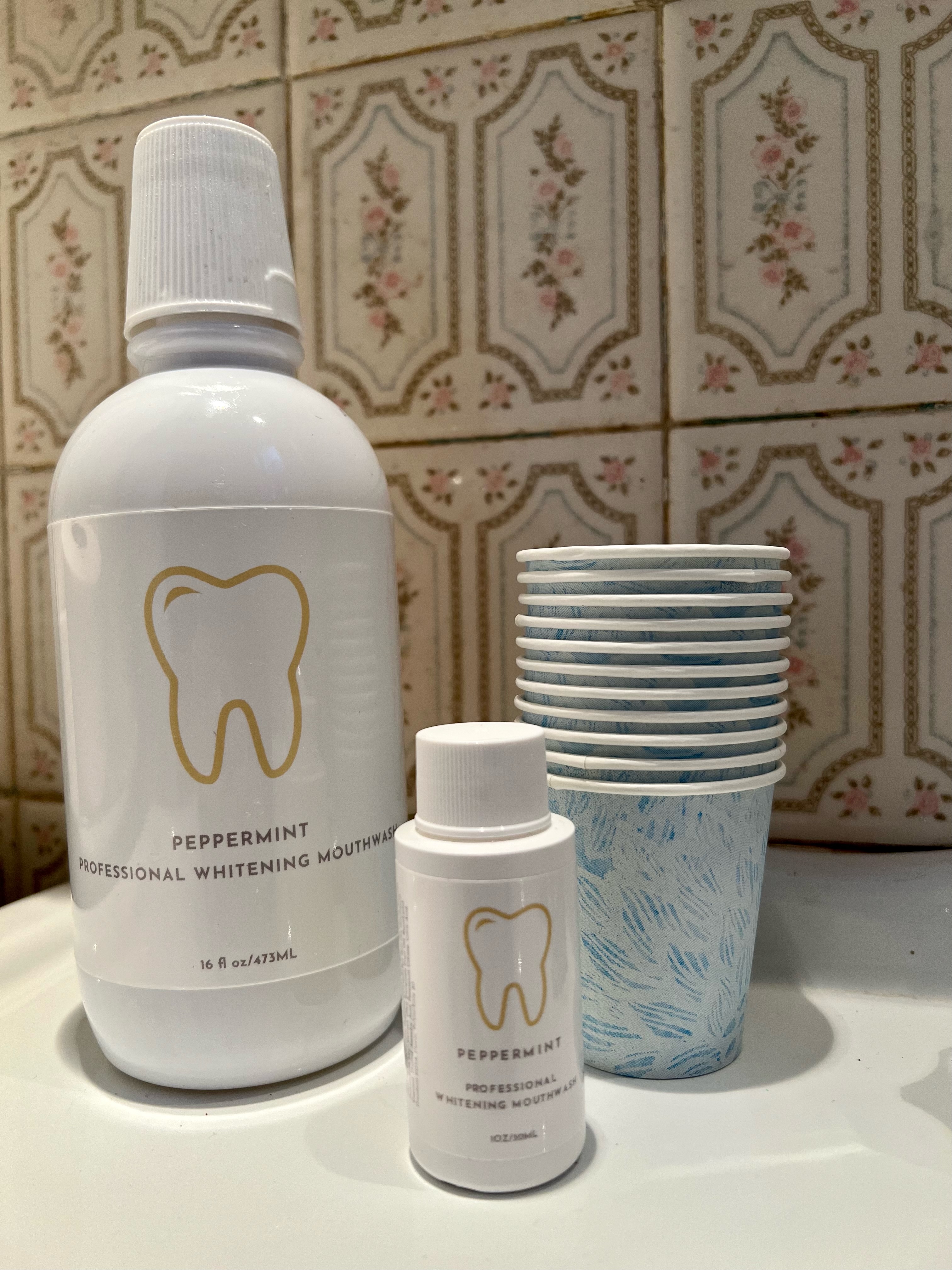 Once we have established that professional chair side teeth whitening is the right choice, we will start your appointment with virtual consent forms and a quick 30 second pre-whitening rinse with our popular peroxide infused mouthwash to help open up the pores of your enamel.